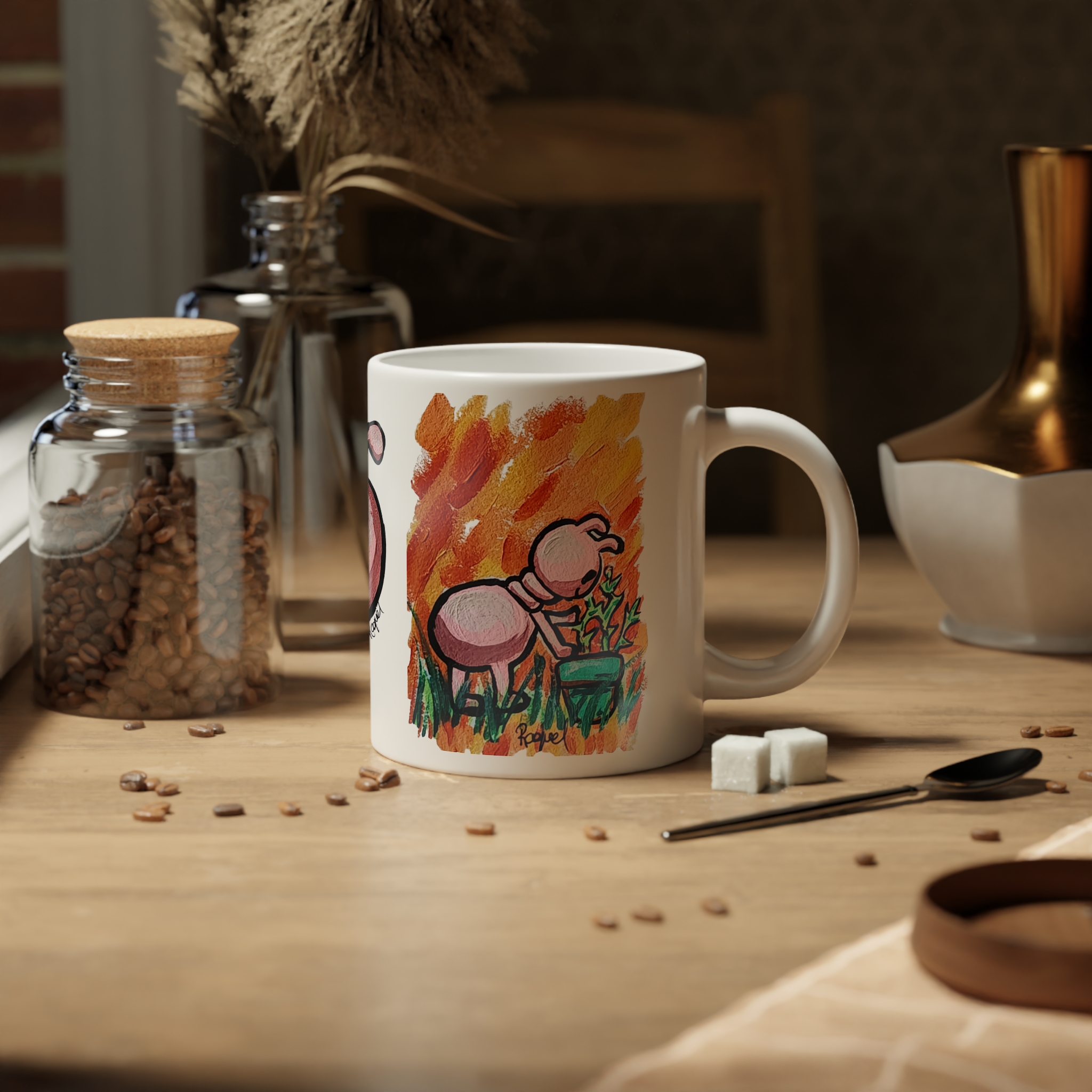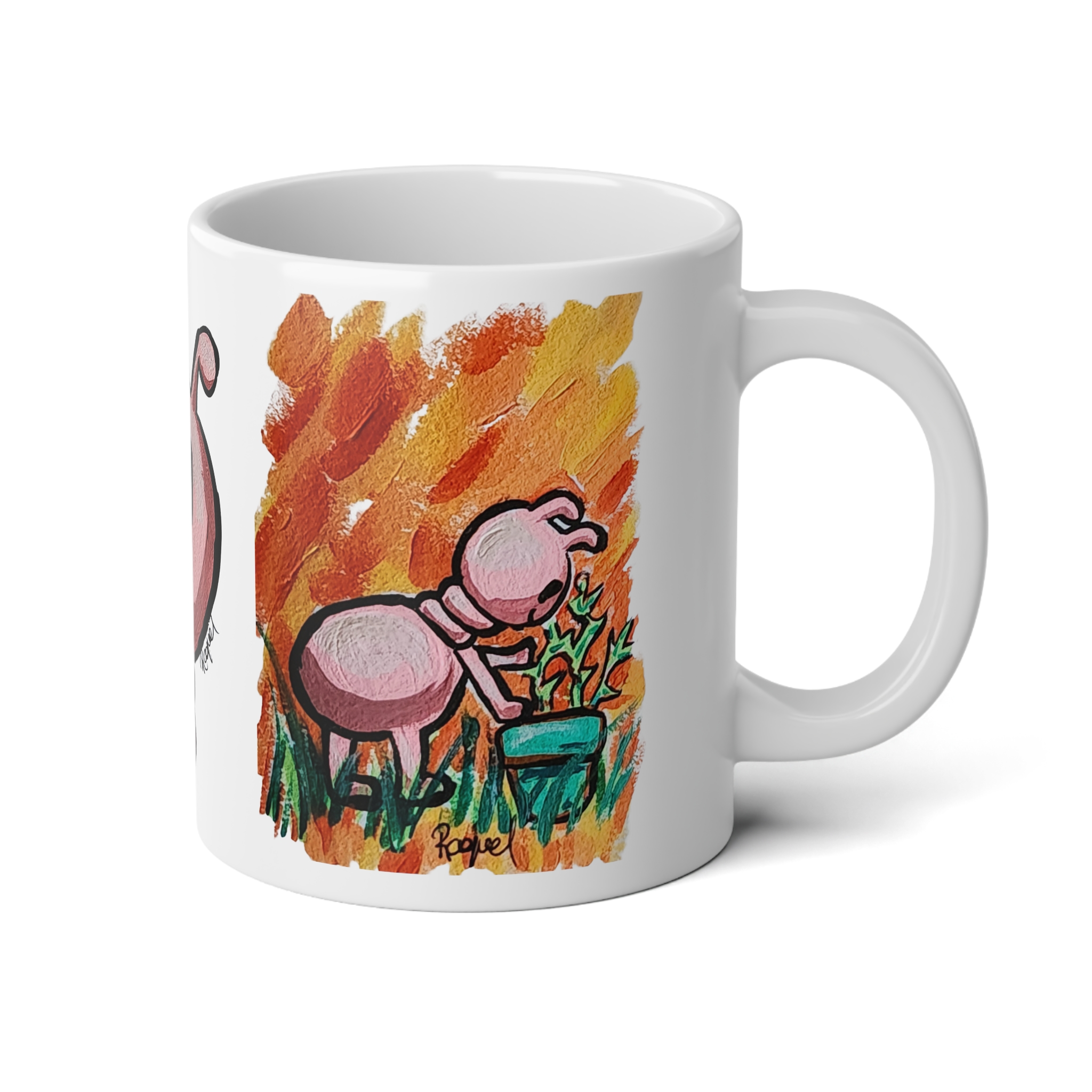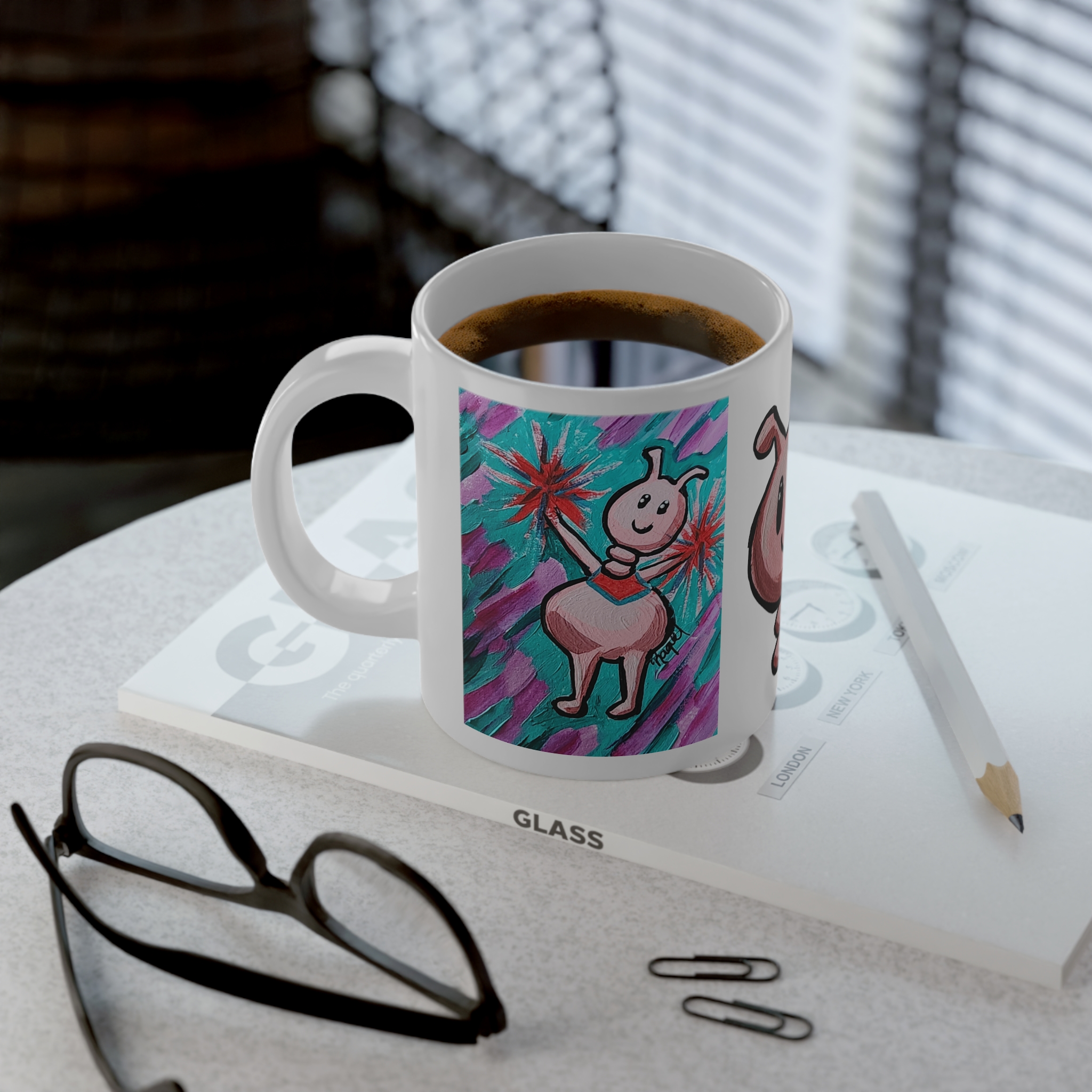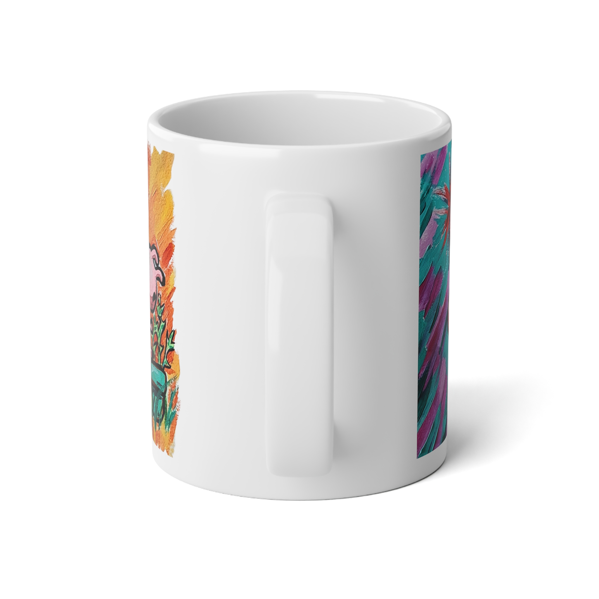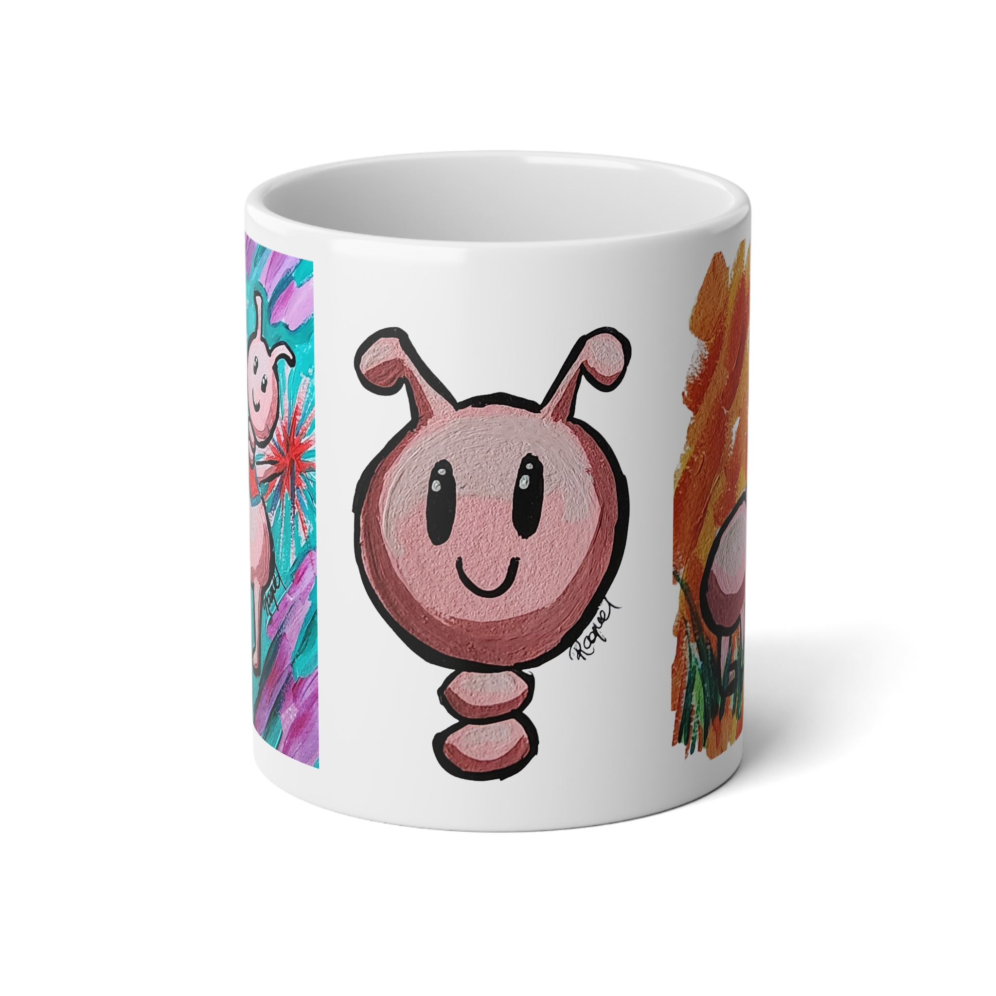 This 20oz jumbo ceramic mug brings a burst of playful color to slow mornings and late-night sketch sessions. Hand-drawn, whimsical creatures wrap around the glossy white surface in bright, painterly strokes that feel like a little gallery on your desk. It’s roomy enough for generous pours of coffee, tea, or hot chocolate and sturdy enough to travel from studio to couch without fuss. The comfortable C-handle and durable ORCA-coated print keep your favorite design vivid through everyday use, while microwave and dishwasher safety make it easy to warm up and clean without worry. Sip, smile, and let the quirky art keep the mood light as you sketch, plan, or unwind.